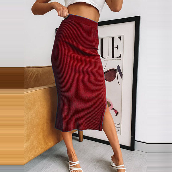 This skirt that exudes simple,cozy yet stylish vibes is worth to arouse your attention. Solid color style,finished with high waist and slit hem design,this skirt not only can showcase your slender figure,but also can exude your charming feminine appeal. Perfect fit for matching with different style tops.