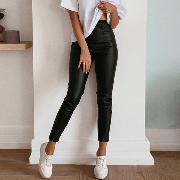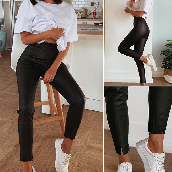 Designed with the flattering black tone and tight silhouette design,this pants is a good way to portray your slender legs. Meanwhile,the slit design at the leg opening part breaks the simple and dull design style. If you wanna look sexy and flirty,then you can consider adding a crop top or a cami top.