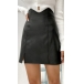 Fashion Solid Color High Waist Slit Hem Slim Fit PU Leather Skirt