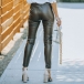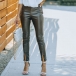 Fashion Solid Color High Waist Slit Leg Opening Slim Fit PU leather Pants