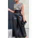 Wanna try a different style pants? Then you can just have a try this PU leather pants. The high waist and wide-leg silhouette design will showcase your slender legs and figure. Comes with the waistband design,which will enrich the design style. We suggest you matching with a crop top to achieve for a sassy and flirty look.