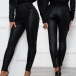 Thanks to the flattering black tone and fit silhouette design,your charming and slender legs can have a full display in this PU leather pants. The zipper design at the leg opening part breaks the simple and dull design style. So why not match with your crop tops to achieve for a sexy and flirty look?