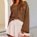 This sweater is the epitome of fashion and comfort. The solid color design adds a sleek and versatile touch, making it easy to pair with various outfits. The hollowout spliced details add a trendy and fashionable element, creating a unique and eye-catching look. Made with high-quality knitted materials, this sweater is soft, cozy, and durable.