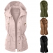 Fashion Solid Color Hooded Drawstring Patch Pockets Vest