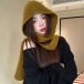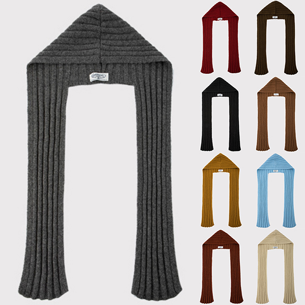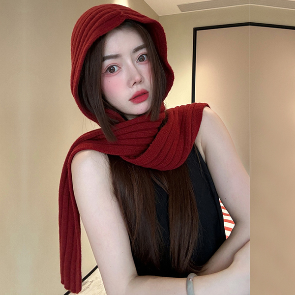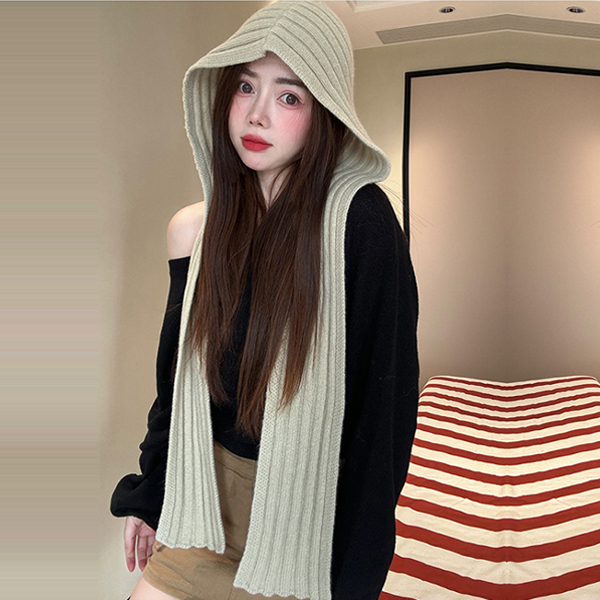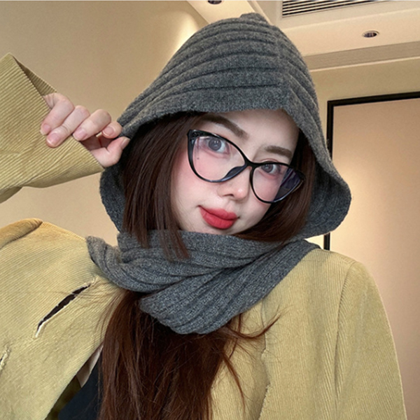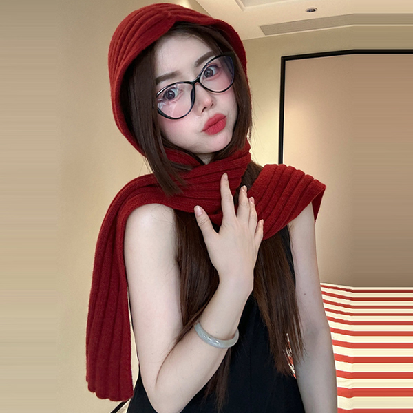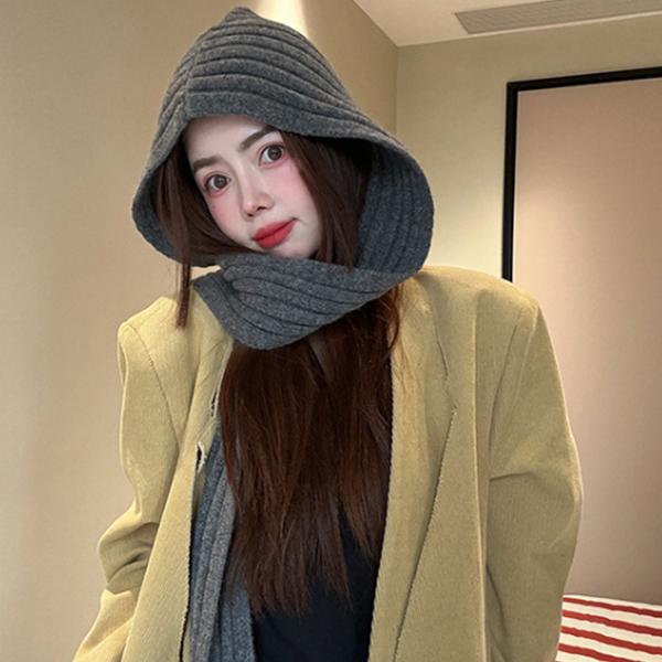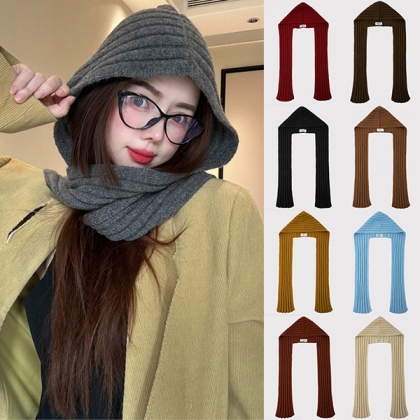 Fashion Solid Color Hooded Knit Scarf-Fall/Winter Knitted Scarf with Hooded
