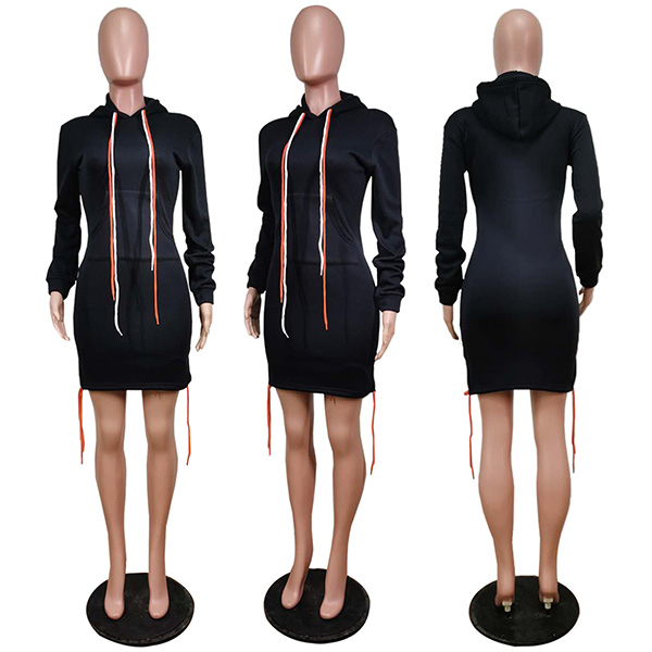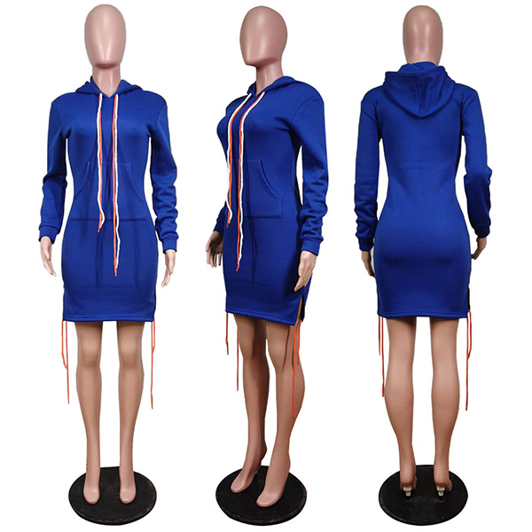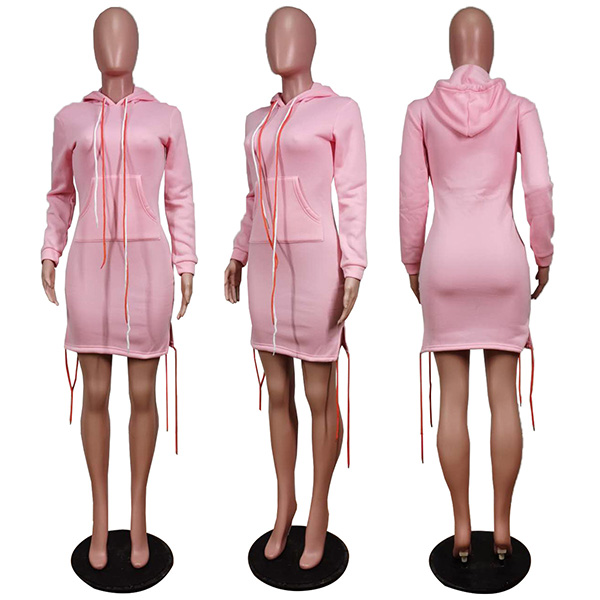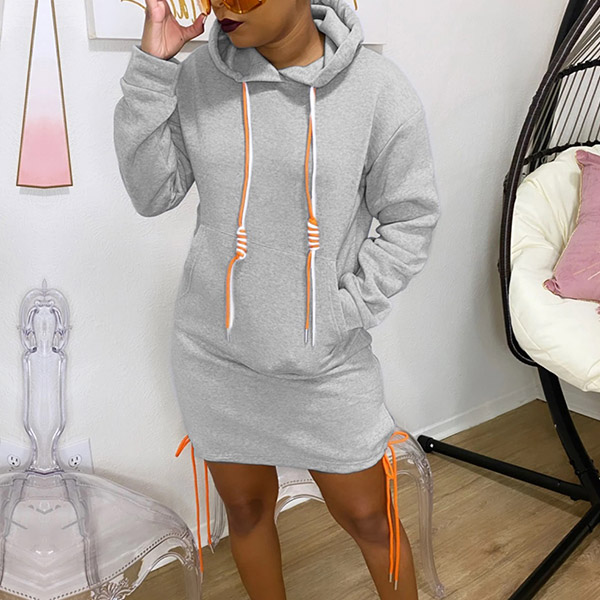 Fashion Solid Color Hooded Lace-up Hem Sweatshirt Dress