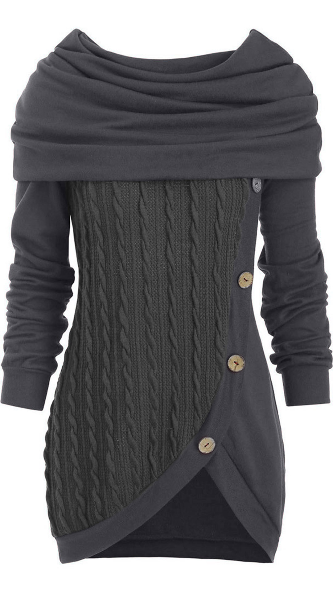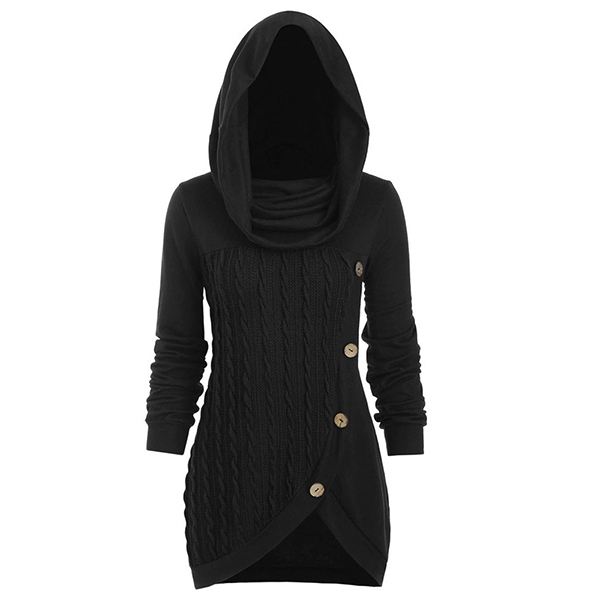 Ce pull présente un design de couleur unie avec une encolure à capuche et des manches longues. L'ourlet est irrégulier, ce qui lui confère un look unique et élégant. Le design à capuche ajoute une touche de style décontracté, ce qui en fait un excellent choix pour une utilisation quotidienne. Disponible en plusieurs couleurs.