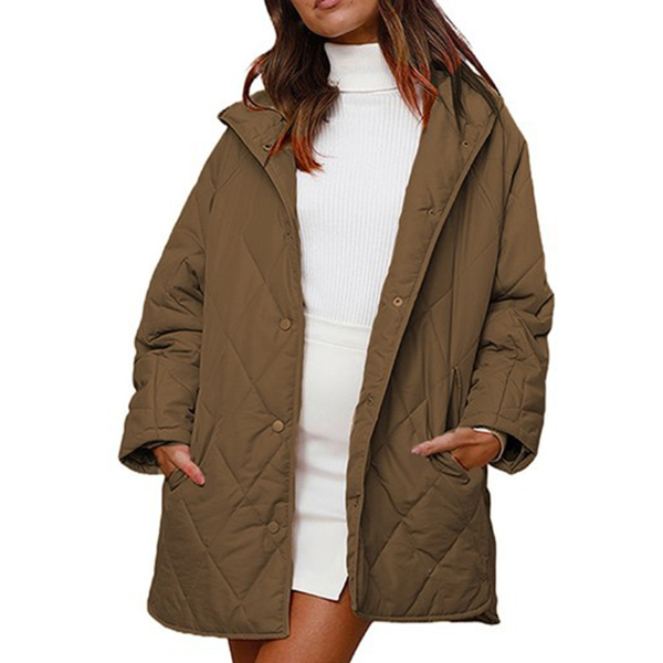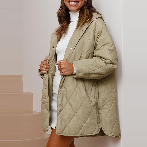 Crafted with high-quality quilted fabric, this jacket offers a cozy and comfortable fit. The solid color design adds a timeless and versatile element, making it suitable for various occasions and settings.