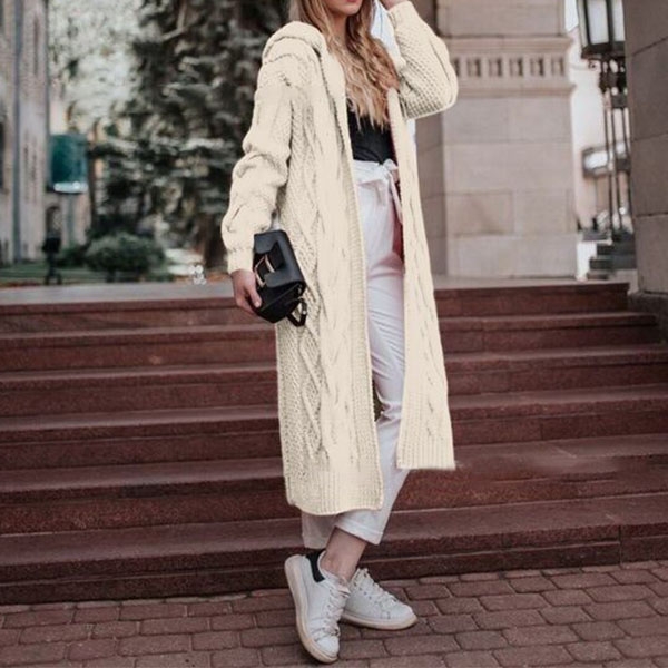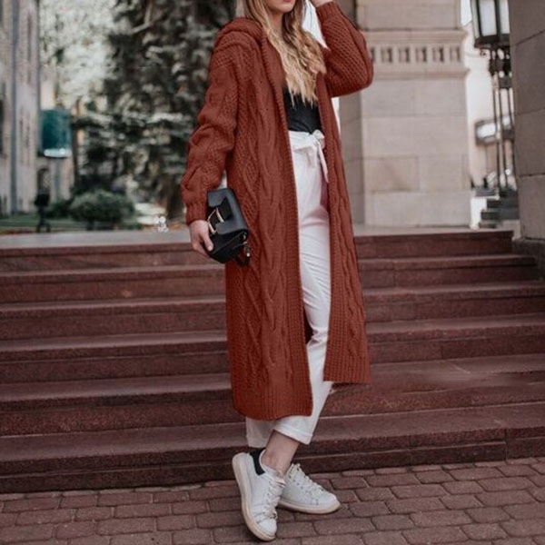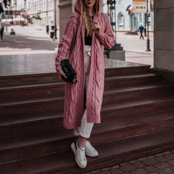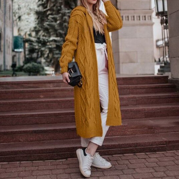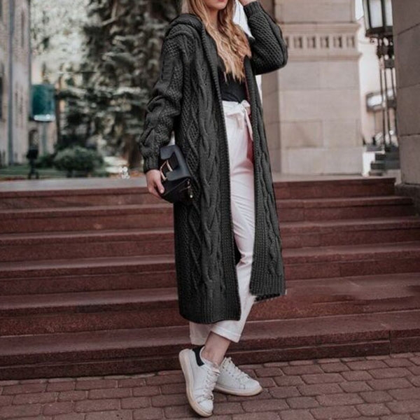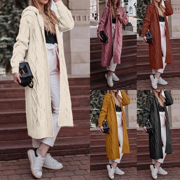 Boasts a solid color,with long sleeve and hooded silhouette,this knit cardigan can keep you warm