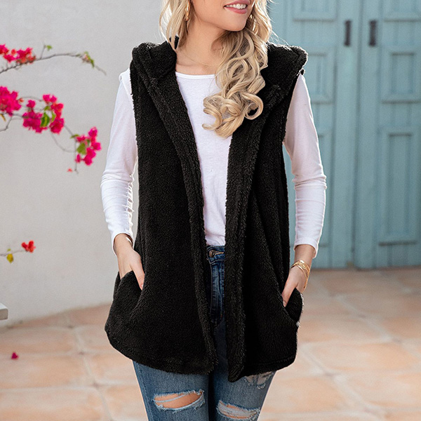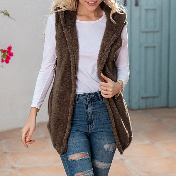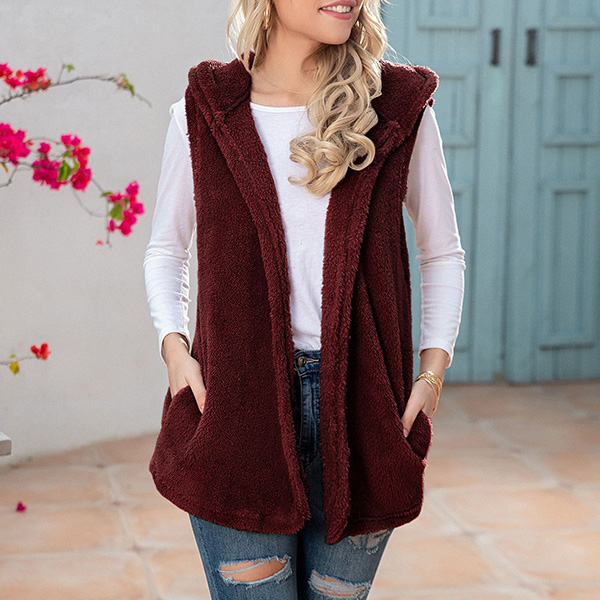 For these neither too hot days nor too cold days,this vest can be your good choice. Solid color style,finished with sleeveless,hooded silhouette and front zipper closure,simple yet classic. Its soft plush fabric can give you a warm day. You can match it with t-shirts,sweaters,shirts and so on.