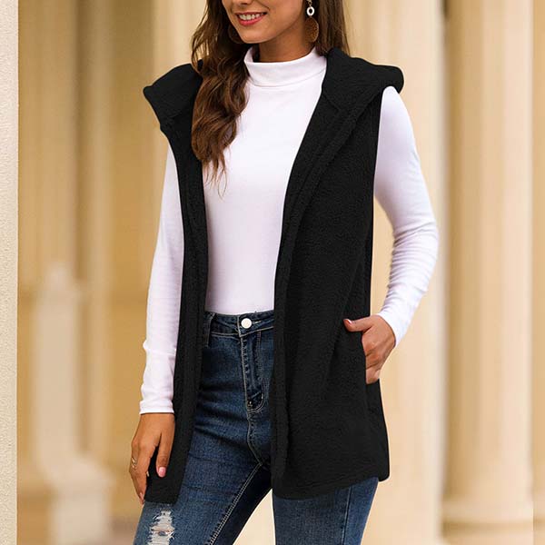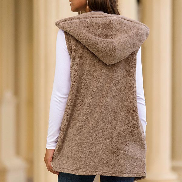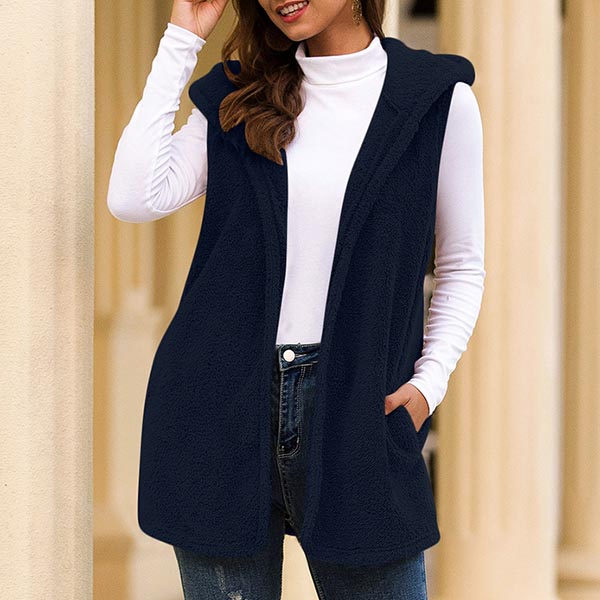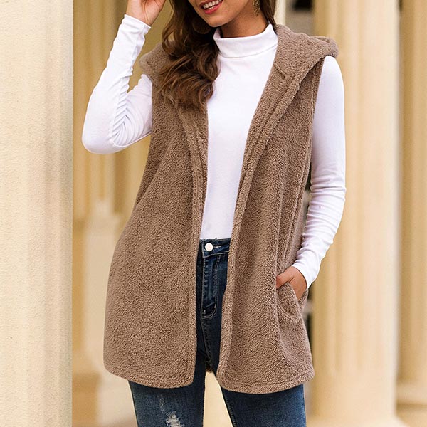 From these autumn days to cold winter days,this plush vest can give you a perfect transition. Solid color tone design makes it look simple,stylish yet generous,while its soft plush fabric and hooded silhouette design can keep you warm and comfortable. Perfect fit for matching with your t-shirts,shirts,sweaters and so on.
