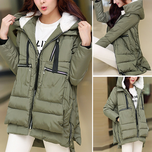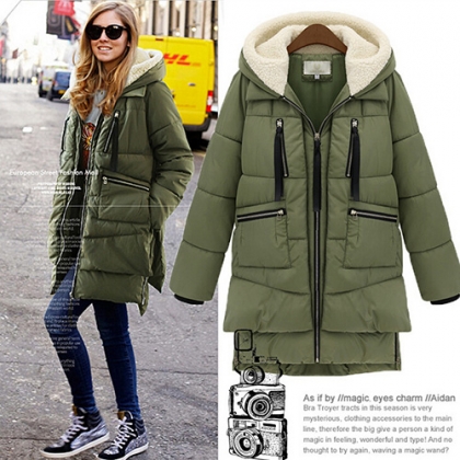 Fashion Solid Color Hooded Warm Down Jacket