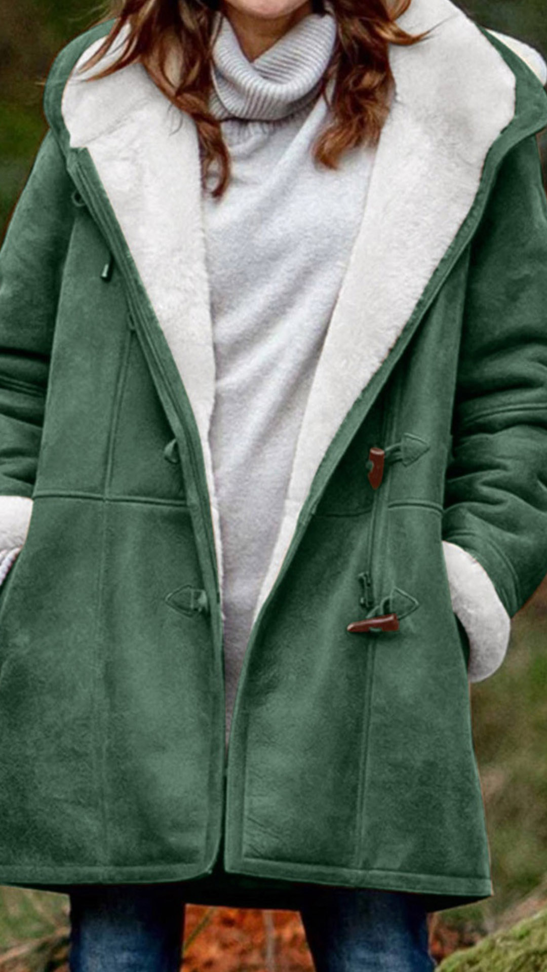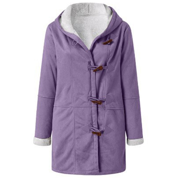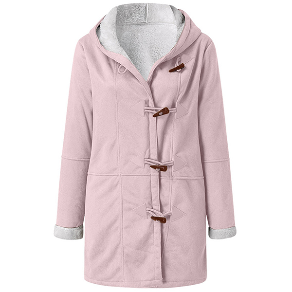 Fashion Solid Color Horn Buckle Plush Lined Hooded Jacket