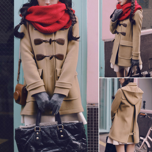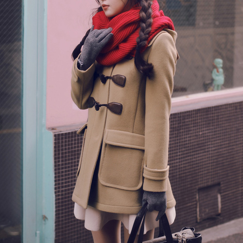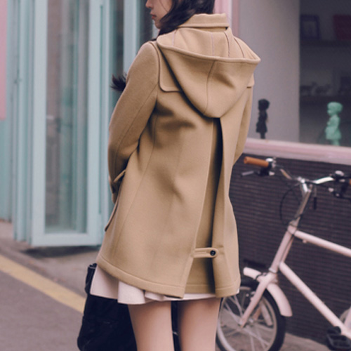 Featuring solid color style,with horn buttons and hooded design. Warm and comfortable to wear.
