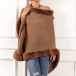 Fashion Solid Color Irregular Hem Faux Fur Spliced Cloap Top