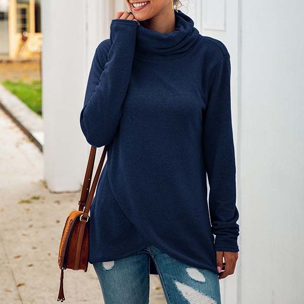 the irregular hem and high collar design make this piece different from others. You can simply matching