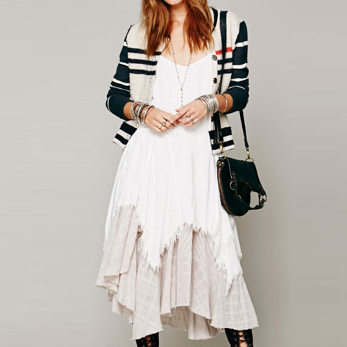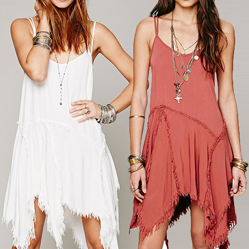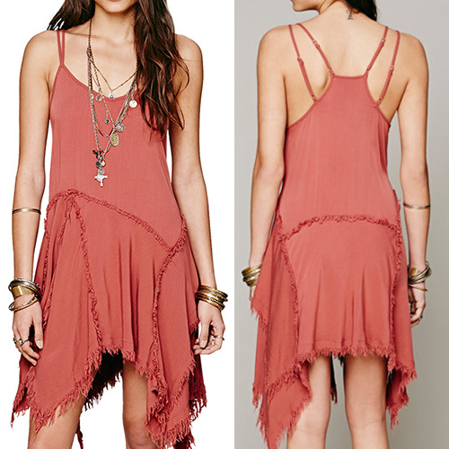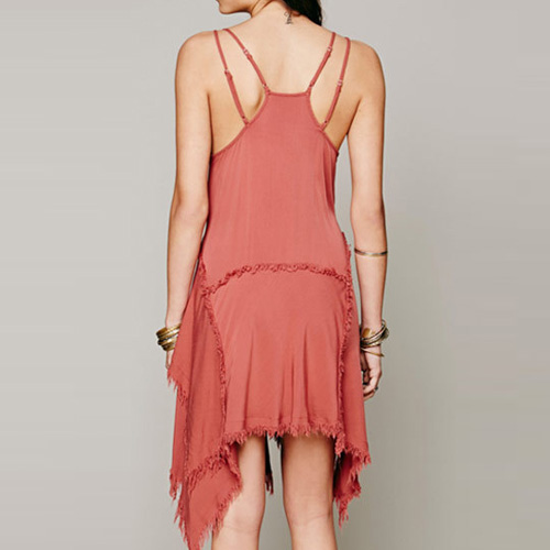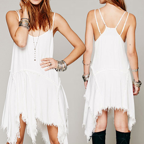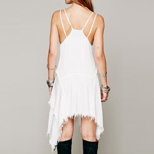 Let this sling dress accompany your summer days. Sling style,with backless and irregular hem design,