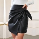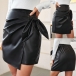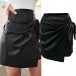 Fashion Solid Color Irregular Hemline Artificial Leather PU Wrap Skirt