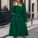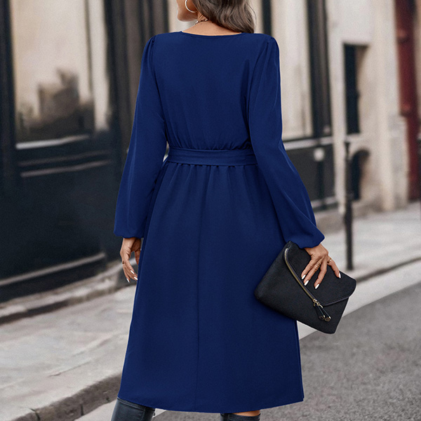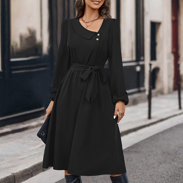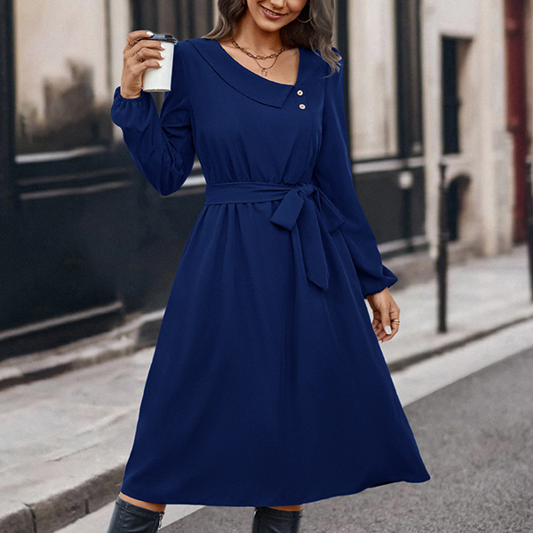 Fashion Solid Color Irregular Hemline Long Sleeve Self-tie Long Sleeve Midi Dress