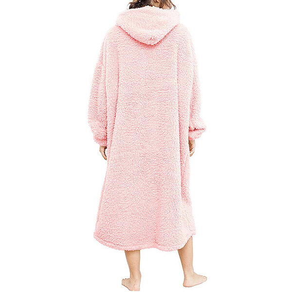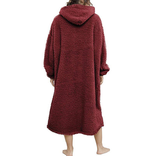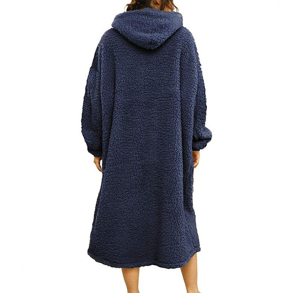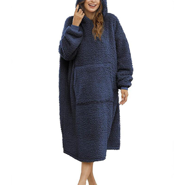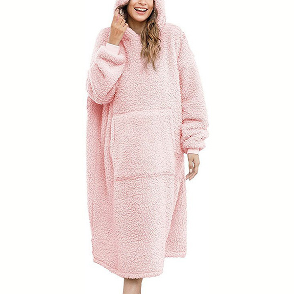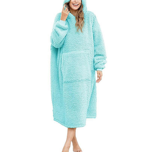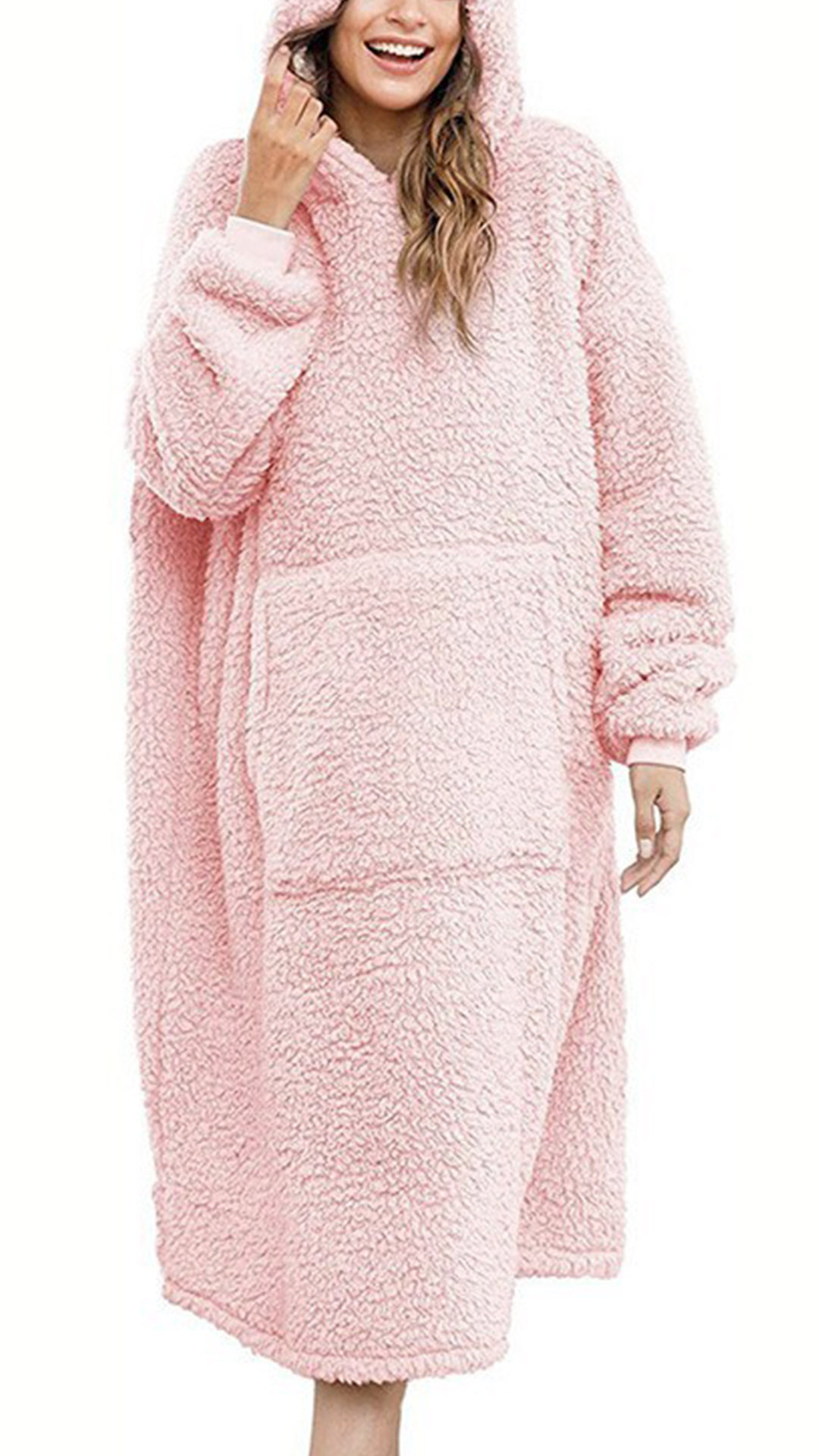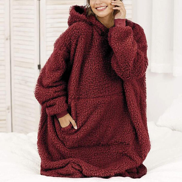 Fashion Solid Color Kangaroo Pocket Plush Hoodie Sherpa TV Blanket Oversized Hoodied