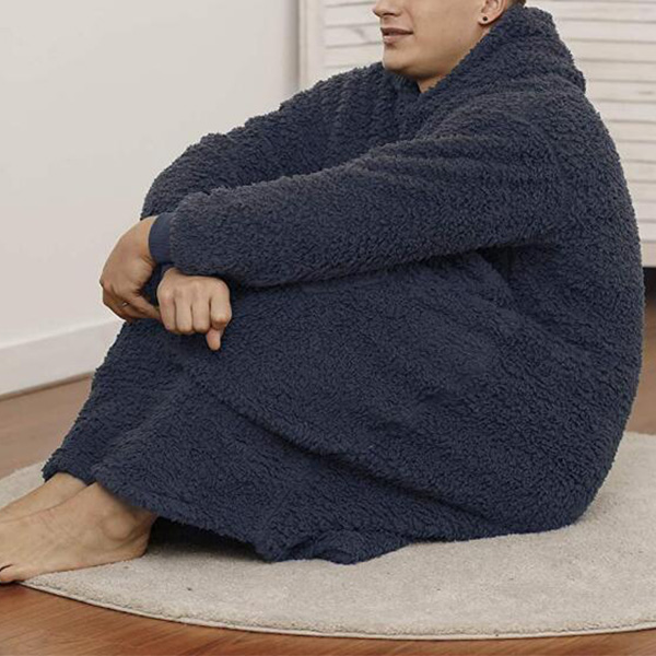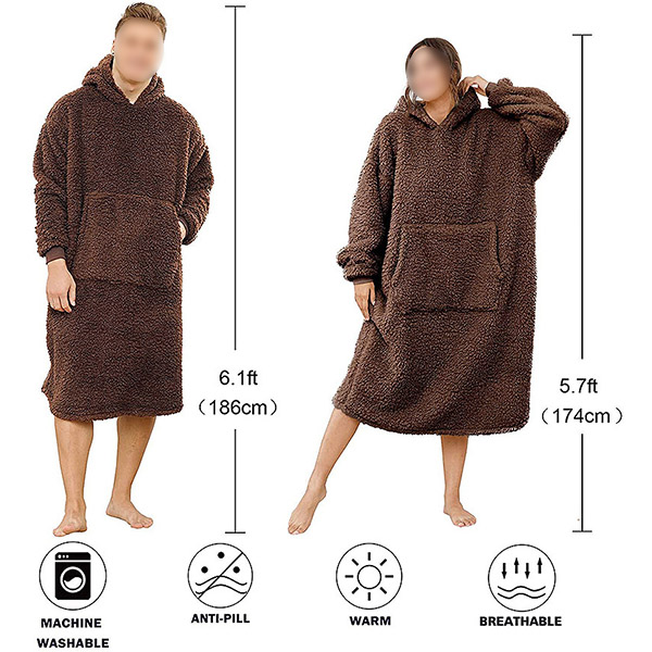 This fashionable and comfortable hoodie sherpa blanket is perfect for snuggling up on the couch to watch TV. It is oversized to keep you warm and has a kangaroo pocket to keep your hands warm. The solid color is perfect for any decor and the plush fabric is soft and cozy.
