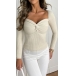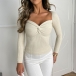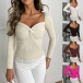 Fashion Solid Color Knik-knot V-neck Long Sleeve Knitted Shirt