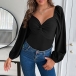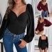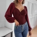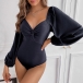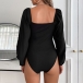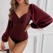 Fashion Solid Color Knit-knot V-neck Long Sleeve Bodysuit