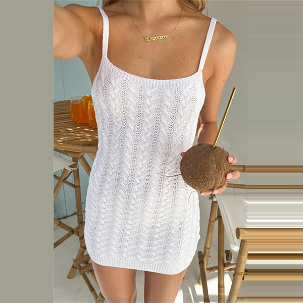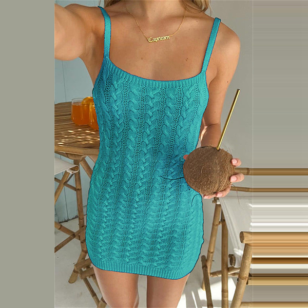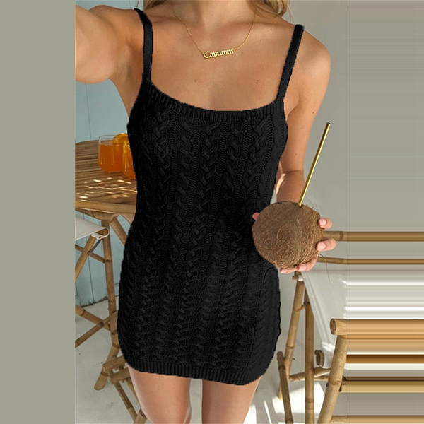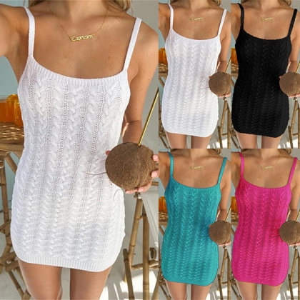 This slip dress is a must-have for your wardrobe. The solid color design is simple yet stylish, and the knitted material adds a touch of texture. The form-fitting bodycon cut hugs your curves, creating a flattering silhouette. Wanna have a try?