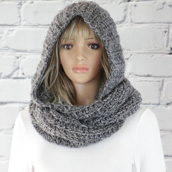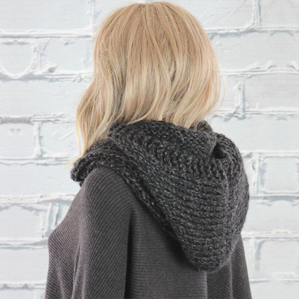 Fashion Solid Color Knitted Hooded Scarf