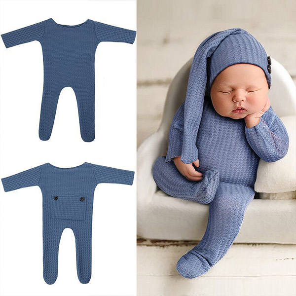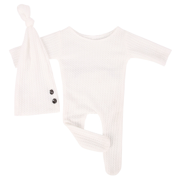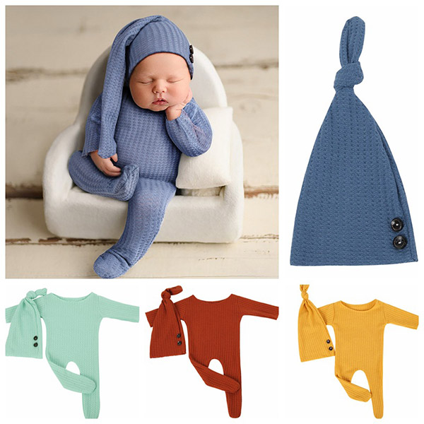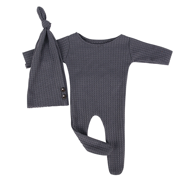 Fashion Solid Color Knitted Romper for Baby with Long Tail Cap