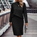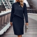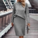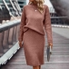 Fashion Solid Color Knitted Two-piece Set Consist of Mock Neck Sweater and Slit Skirt