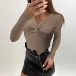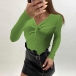 Designed to provide both comfort and style, this shirt is a versatile piece that can be dressed up or down for any occasion. The solid color adds a sleek and modern touch, while the knotted detail at the front creates a trendy and flattering silhouette.