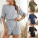 Fashion Solid Color Knotted Short Sleeve Round Neck Romper