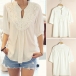 Featuring flowy construction, complete with v-neck, half sleeve, lace spliced and hollow out design, this chiffon tops can bring