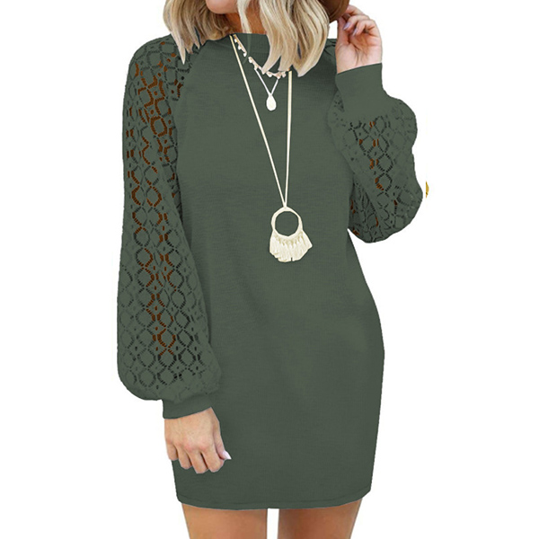For your autumn days,this long sleeve knit dress can easily strike your mind. Solid color style,the lace spliced lantern sleeve design breaks the simple and dull design style,while its soft,breathable fabric and shift silhouette design can offer you a comfortable day. Try to match with your over-the-knee boots.