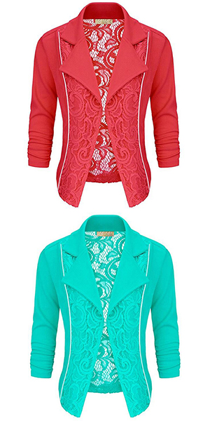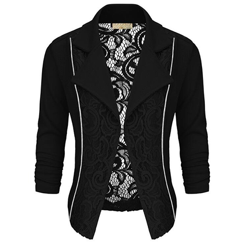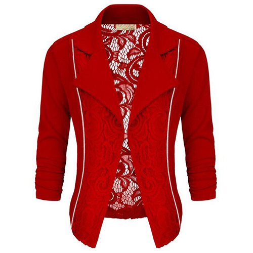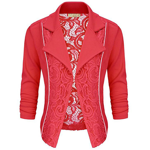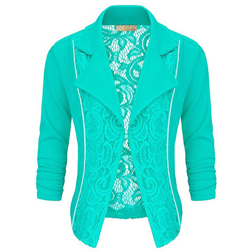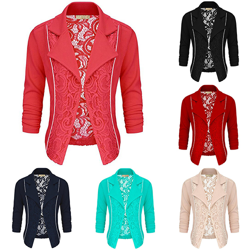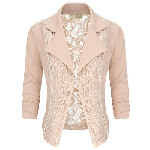 Classic lace spliced design is paired with lapel and long sleeve, giving it an added style finish.