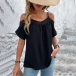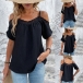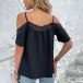 Fashion Solid Color Lace Spliced Open-shoulder Cami Shirt