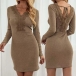 How about this dress? I like the lace spliced along the sexy V-neck and the backless design, and you?