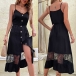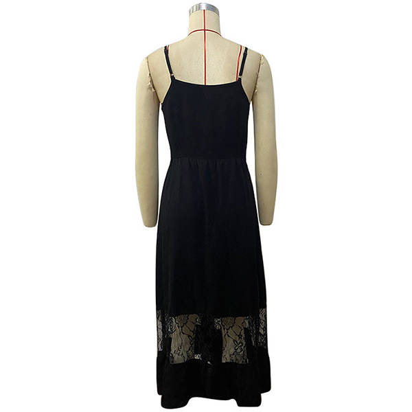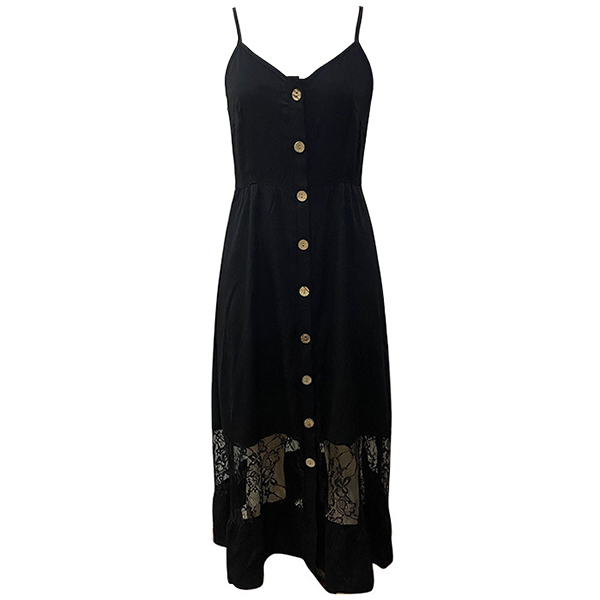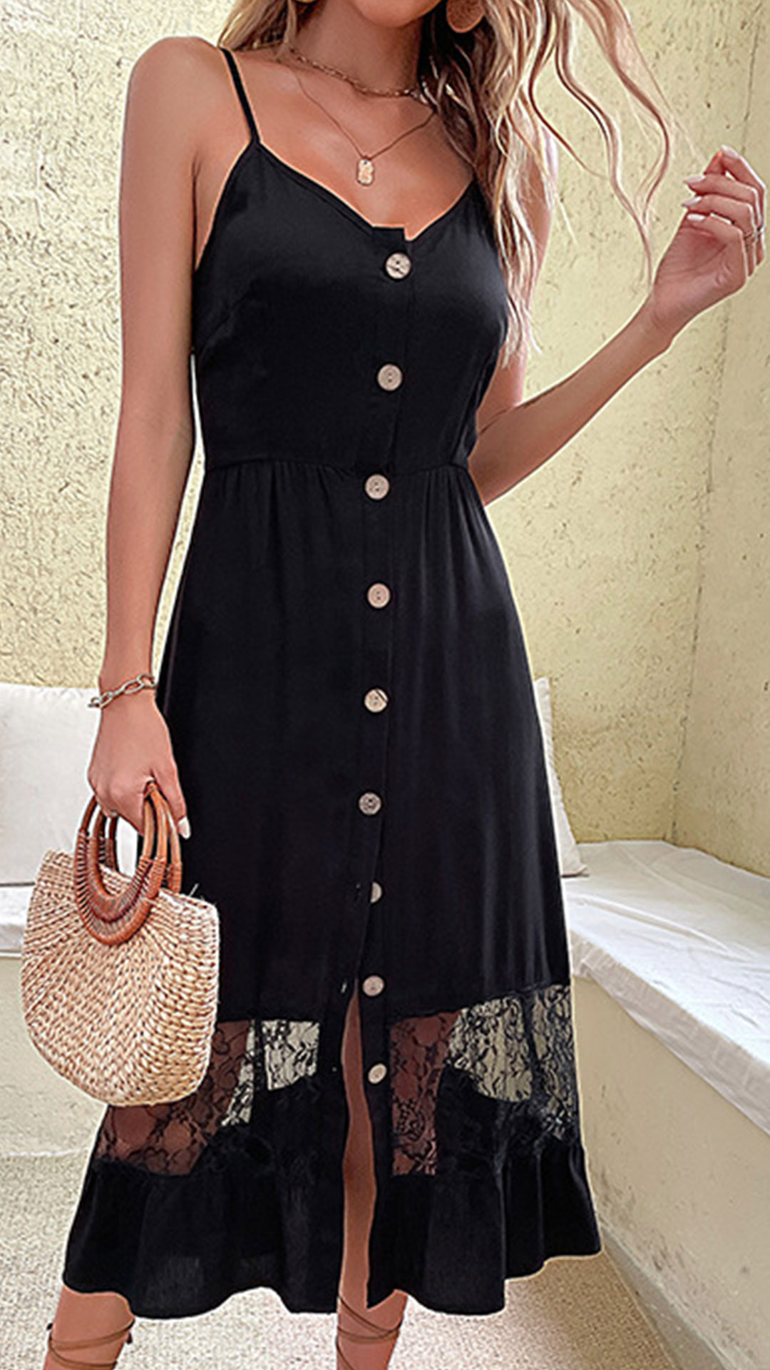 Fashion Solid Color Lace Spliced V-neck Buttoned Slip Dress