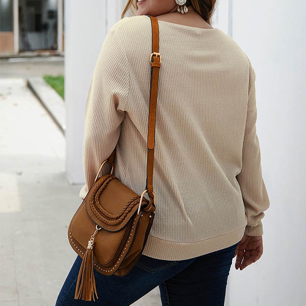 Crafted from soft and cozy knitted fabric,this long sleeve knit top that can offer you a comfortable day