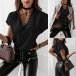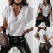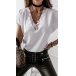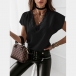 Fashion Solid Color Lace Spliced V-neck SHort Sleeve Loose Top