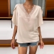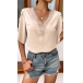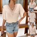 Fashion Solid Color Lace Spliced V-neck Short Sleeve Shirt