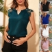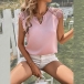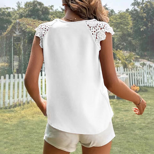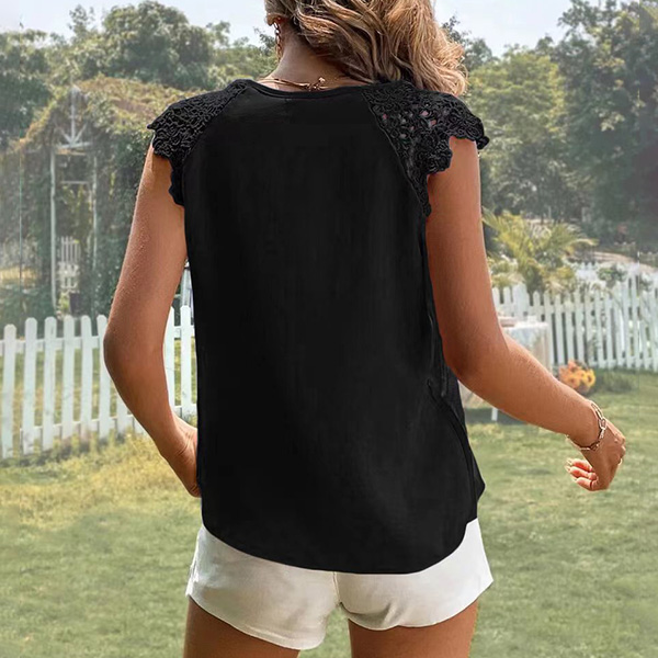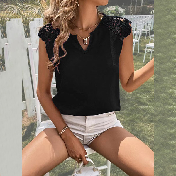 Fashion Solid Color Lace Spliced V-neck Sleeveless Shirt