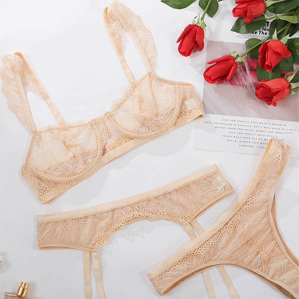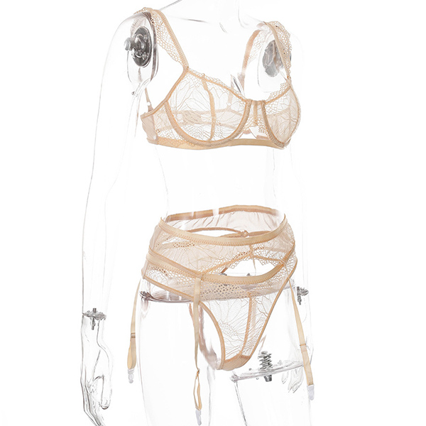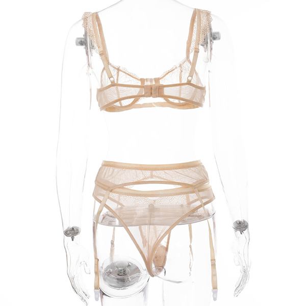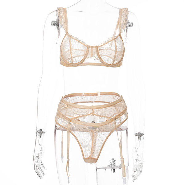 Fashion Solid Color Lace Three-piece Lingerie Set
