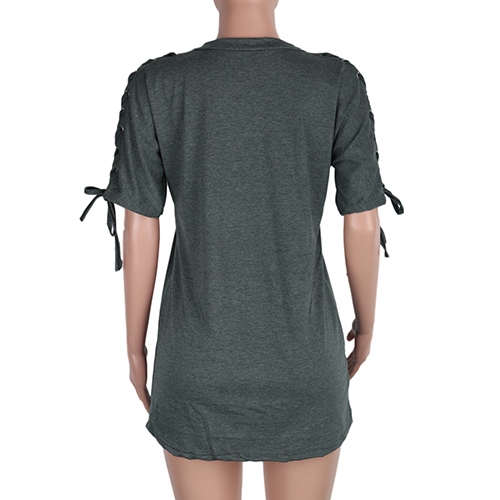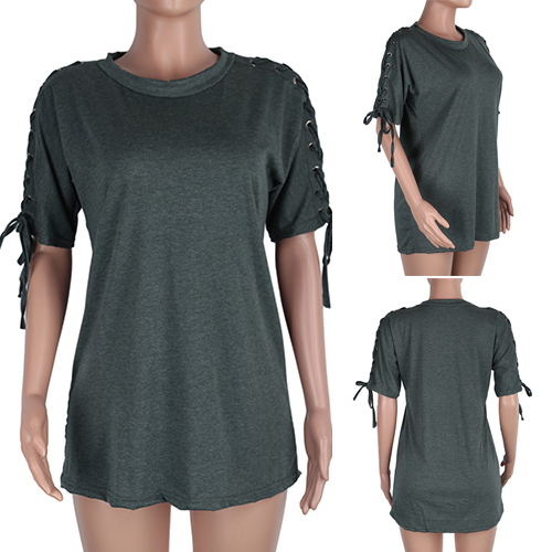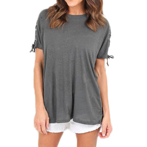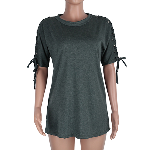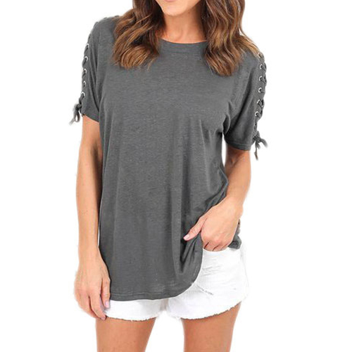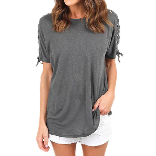 Fashion Solid Color Lace-up Short Sleeve Round Neck Loose T-shirt