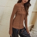 Fashion Solid Color Lace-up V-neck Long Sleeve Knit Top