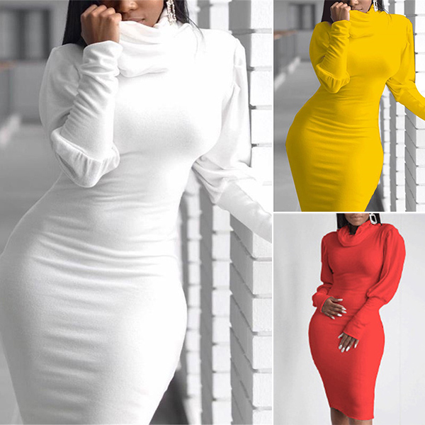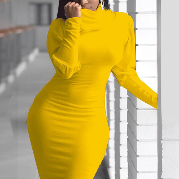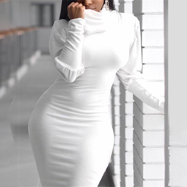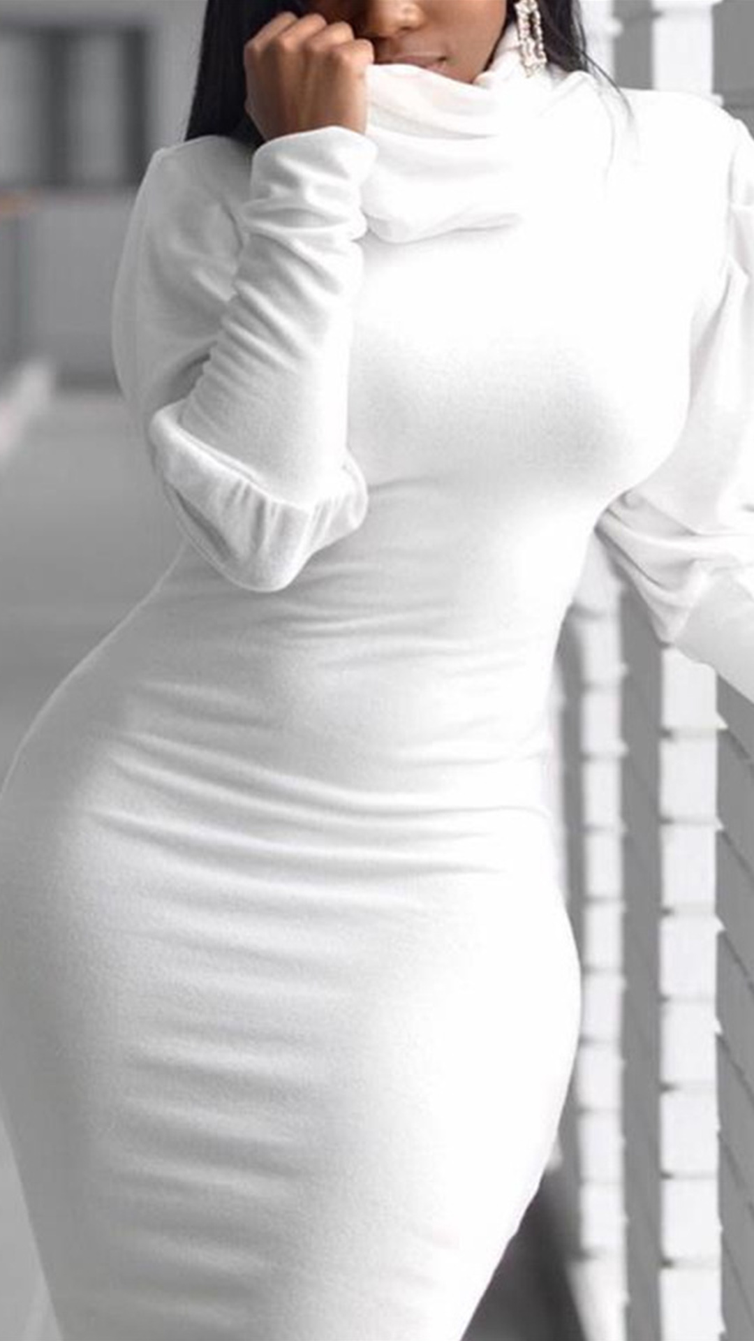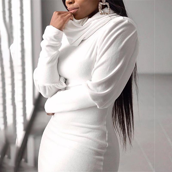 When the autumn days hit,this dress can be your perfect choice. Solid color style,the lantern sleeve and cowl neck design make this piece look so stylish and attractive. Moreover,the fit silhouette design can better showcase your slender figure. You can dress it up with your favourite heels to start your wonderful day.