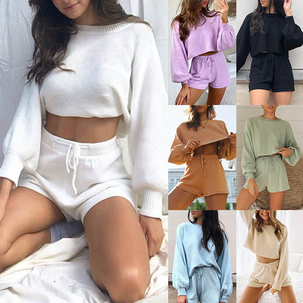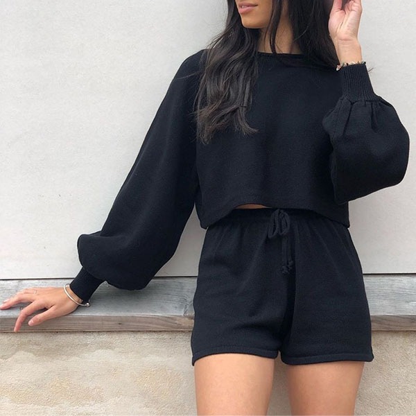 When you have no time to think about what to wear for your daily out,you can just have a try this knit two-piece set. Solid color style,including a lantern sleeve round neck crop top and a shorts,this two-piece set not only can maintain the comfy,but also can update your style and boost your charm.