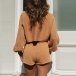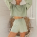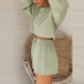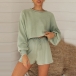 Fashion Solid Color Lantern Sleeve Knit Top+ Shorts Two-piece Set