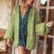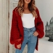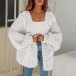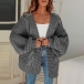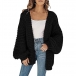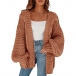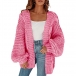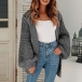 Fashion Solid Color Lantern Sleeve Loose Knit Cardigan